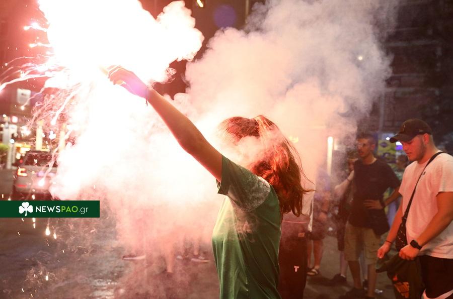 Αμέσως μετά τη λήξη αγώνα στο ΟΑΚΑ, οι φίλοι του τριφυλλιού βγήκαν σε κεντρικούς δρόμους της Αθήνας και έστησαν γλέντι, κάνοντας τη νύχτα μέρα με τα καπνογόνα που άναψαν.