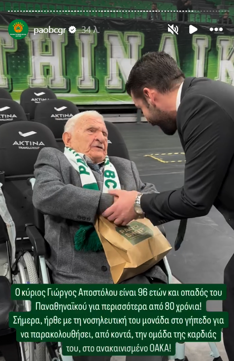 «Ο κύριος Γιώργος Αποστόλου είναι 96 ετών και οπαδός του Παναθηναϊκού για περισσότερα από 80 χρόνια!