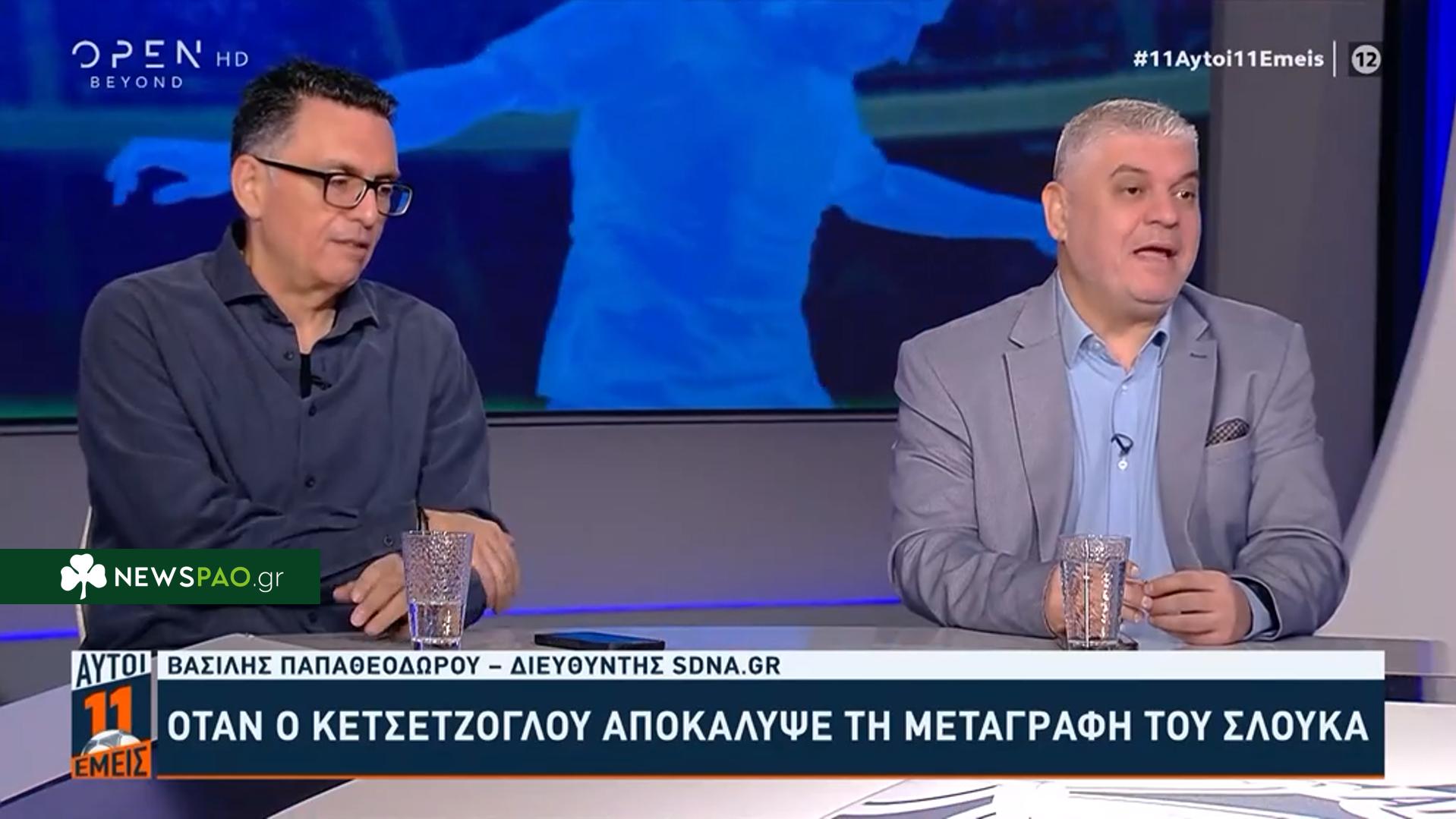 Ο Βασίλης Παπαθεοδώρου στην εκπομπή «11 εμείς, 11 αυτοί» θυμήθηκε το παρασκήνιο της μεταγραφής του Κώστα Σλούκα με τον Κώστα Κετσετζόγλου να προχωράει σε αποκαλύψεις.