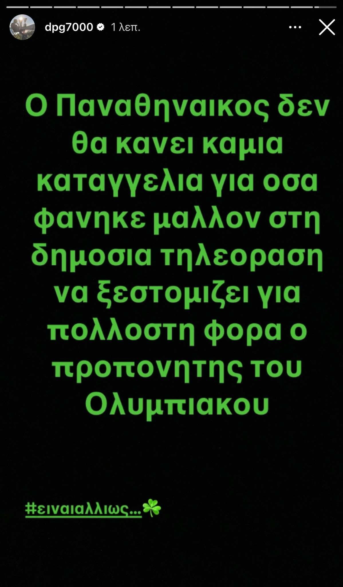 Με νέο story στο Instagram ο «DPG» φανέρωσε τη στάση που θα διατηρήσει ο Παναθηναϊκός Aktor απέναντι στον Γιώργο Μπαρτζώκα.