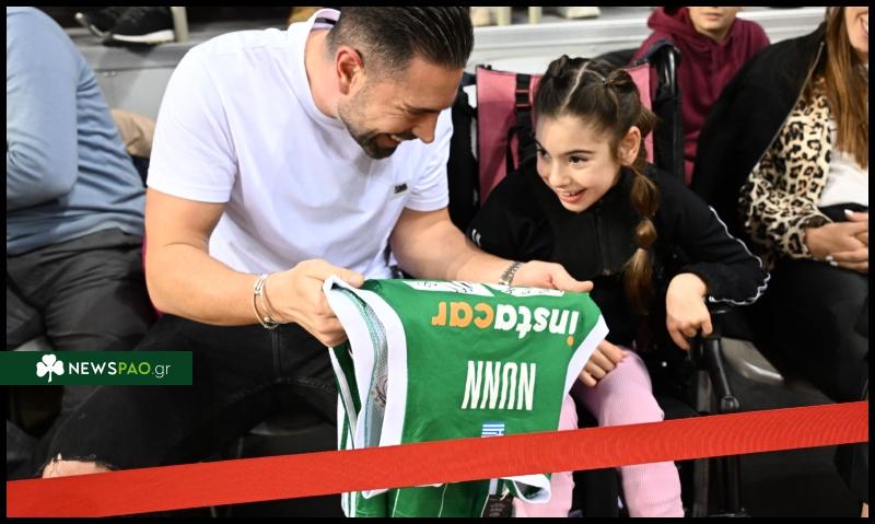 Έπειτα από πρωτοβουλία του κ. Δημήτρη Γιαννακόπουλου, ο υπεύθυνος ασφαλείας της ΚΑΕ Παναθηναϊκός AKTOR, κ. Μιχάλης Γεωργαντής, παρέδωσε μια εμφάνιση της ομάδας, υπογεγραμμένη από τον Κέντρικ Ναν, στη μικρή Μαρία, η οποία αντιμετωπίζει ένα σοβαρό πρόβλημα υγείας.