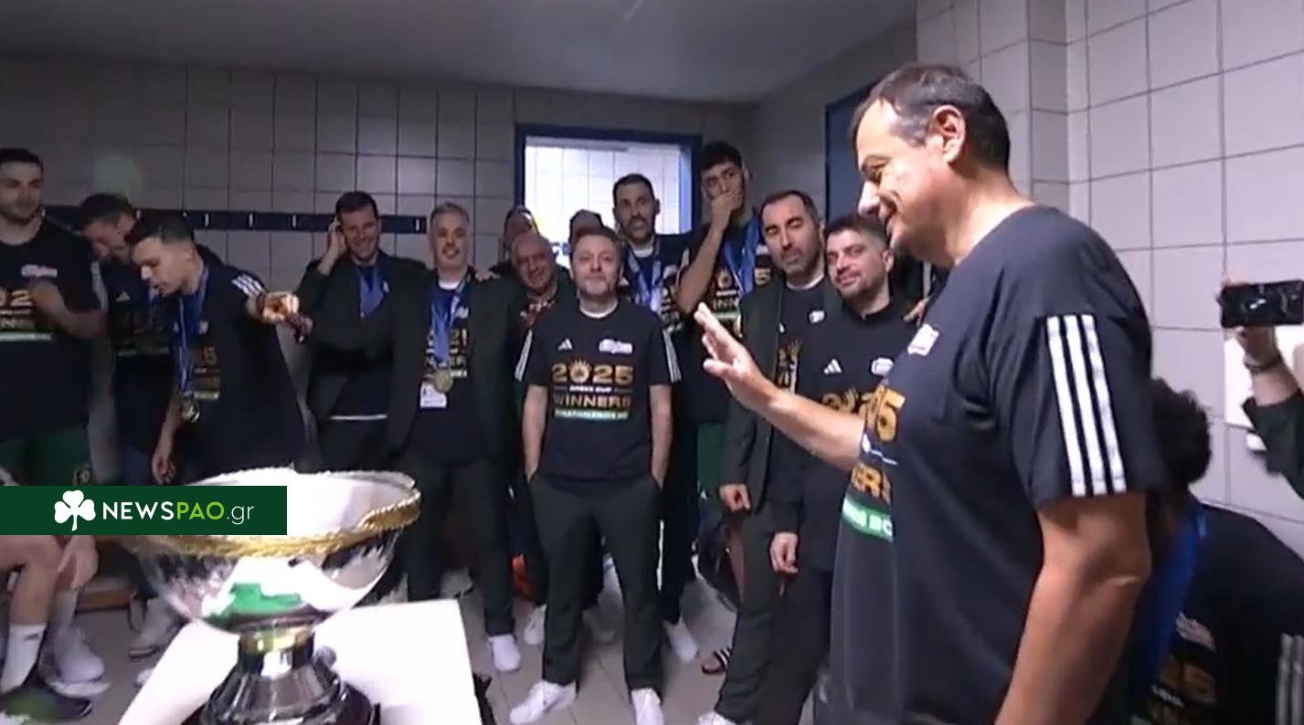 “Ξέρετε ότι μας έλειψε αυτό το Κύπελλο και ξέρετε πόσο πολύ θέλει ο Σλούκας να κερδίσει αυτό το Κύπελλο. Σε ευχαριστώ για αυτό Σλούκα, αλλά ξέρετε ποιο κύπελλο θέλω. Το επόμενο κύπελλο. Υπάρχει ένα μήνυμα από τον κύριο Γιαννακόπουλο. Ο κύριος Γιαννακόπουλος τηλεφώνησε, είπε “ευχαριστώ” σε όλους και θα δώσει 100.000 bonus, αλλά όχι για τον καθένα προφανώς, για την ομάδα”.