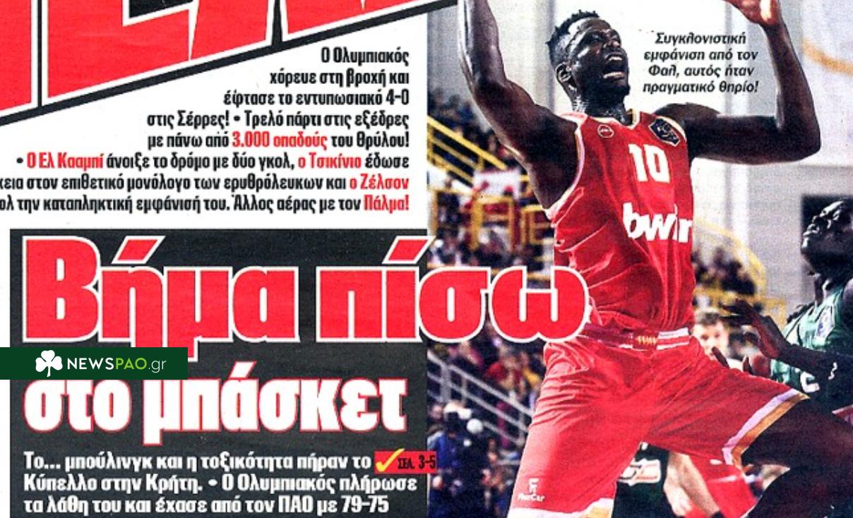 Οπως αναφέρει: «Βήμα πίσω στο μπάσκετ Το… μπούλινγκ και η τοξικότητα πήραν το Κύπελλο στην Κρήτη. Ο Ολυμπιακός πλήρωσε τα λάθη του και έχασε από τον ΠΑΟ με 79-75».