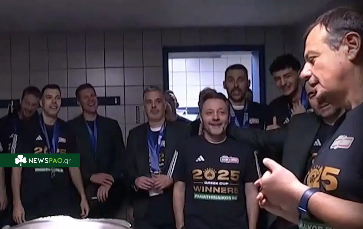«Ξέρετε ότι μας έλειψε αυτό το Κύπελλο και ξέρετε πόσο πολύ θέλει ο Σλούκας να κερδίσει αυτό το Κύπελλο. Σε ευχαριστώ για αυτό Σλούκα, αλλά ξέρετε ποιο κύπελλο θέλω. Το επόμενο κύπελλο. Υπάρχει ένα μήνυμα από τον κύριο Γιαννακόπουλο. Ο κύριος Γιαννακόπουλος τηλεφώνησε, είπε “ευχαριστώ” σε όλους και θα δώσει 100.000 bonus, αλλά όχι για τον καθένα προφανώς, για την ομάδα».
