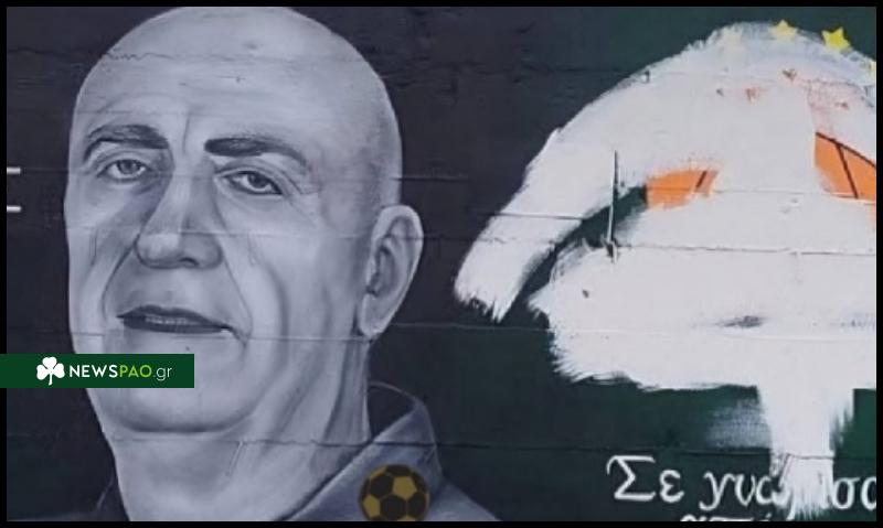 Ένα ωραίο έργο τέχνης στη μνήμη του επί χρόνια team manager του Παναθηναϊκού χάλασαν κάποιοι ανεγκέφαλοι σβήνοντας το έμβλημα της ομάδας.