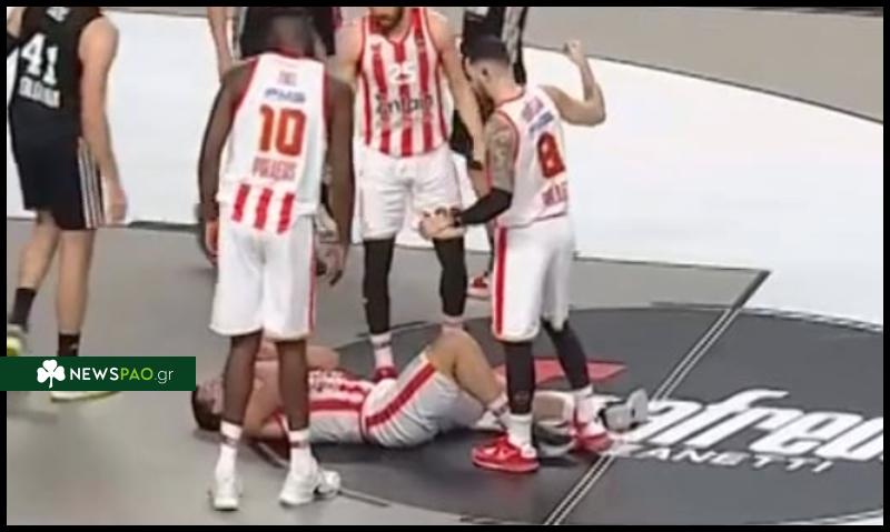 Ο Έλληνας γκαρντ σε προσπάθεια του για καλάθι έπεσε άτσαλα στο παρκέ, μετά από φάουλ του Παγιόλα, με αποτέλεσμα να ανοίξει η μύτη του και να αποσυρθεί για τα αποδυτήρια.