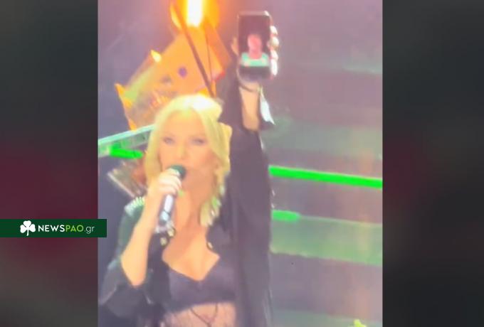Σε μια απρόσμενη στιγμή διασκέδασης, ένας φίλαθλος του Τριφυλλιού πλησίασε την Πέγκυ Ζήνα με το κινητό του, δείχνοντάς της φωτογραφία του Αμερικανού γκαρντ.