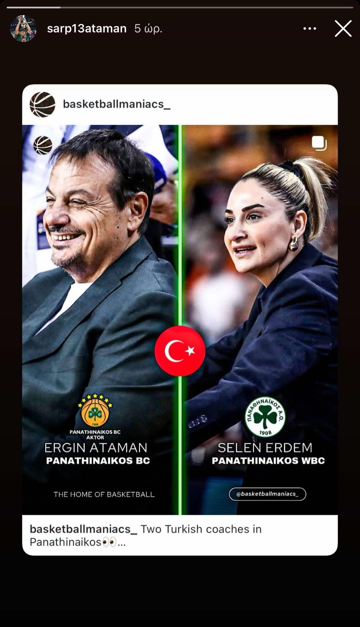 Ο γιος του Εργκίν Αταμάν καλωσόρισε με ένα «στόρι» τη Σελέν Ερντέμ στον Παναθηναϊκό.