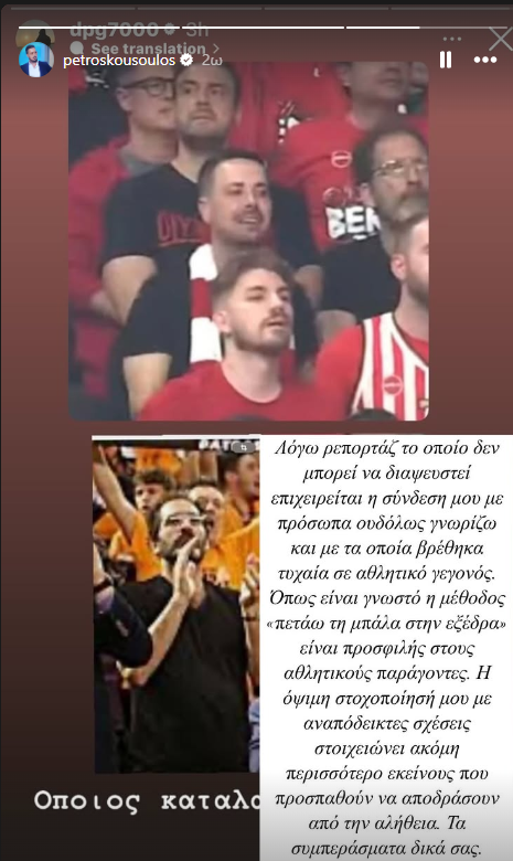 «Λόγω ρεπορτάζ το οποίο δεν μπορεί να διαψευστεί επιχειρείται η σύνδεσή μου με πρόσωπα ουδόλως γνωρίζω και με τα οποία βρέθηκαν τυχαία σε αθλητικό γεγονός.