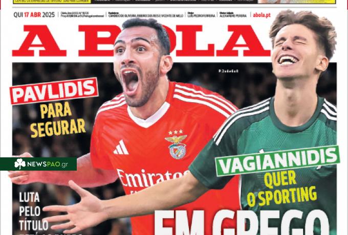 Ελληνικό «άρωμα» κυριαρχεί στο εξώφυλλο της κορυφαίας αθλητικής εφημερίδας της Πορτογαλίας, με νέο δημοσίευμα να επικεντρώνεται στον Γιώργο Βαγιαννίδη και το φλερτ με τη Σπόρτινγκ Λισαβόνας.