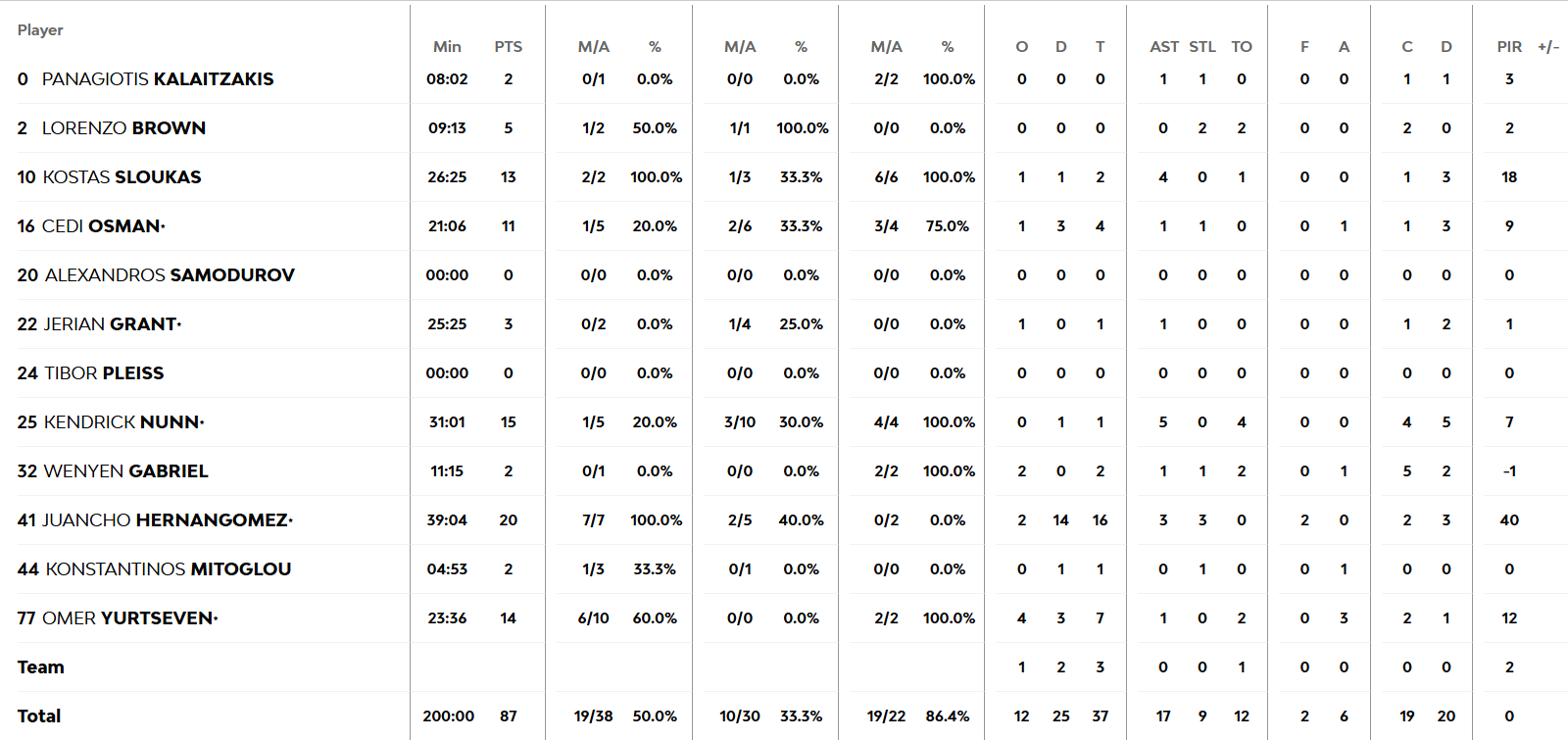 Ομέρ Γιουρτσεβέν (7.5/10): Θετική εμφάνιση από τον Γιουρτσεβέν σε άμυνα-επίθεση με 14 πόντους και 7 ριμπάουντ (4 επιθετικά).