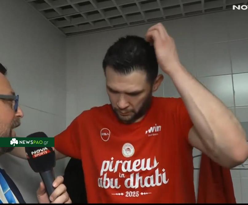 Στα αποδυτήρια εμφανίστηκαν και… μπλουζάκια για την πρόκριση στην τελική φάση, τα οποία γράφουν “ο Πειραιάς στο Άμπου Ντάμπι”.