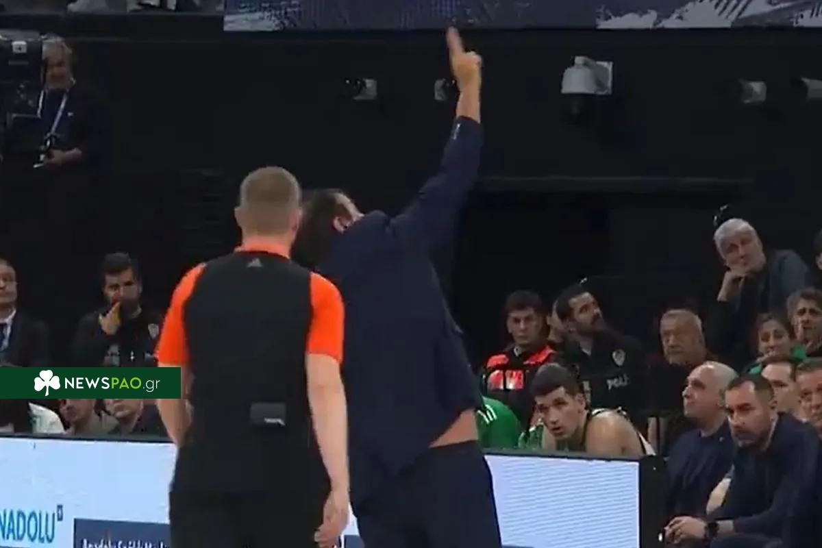 Η αντίδρασή του ήταν άμεση: ύψωσε το ένα του χέρι σχηματίζοντας τον αριθμό δύο, ενώ με το άλλο έδειξε τα δύο πανό των κατακτήσεων της Euroleague που κοσμούν την οροφή του γηπέδου — τρόπαια που είχε κατακτήσει ως προπονητής της Εφές. Μια κίνηση που θύμιζε σε όλους το στίγμα που άφησε στην ομάδα της Κωνσταντινούπολης.