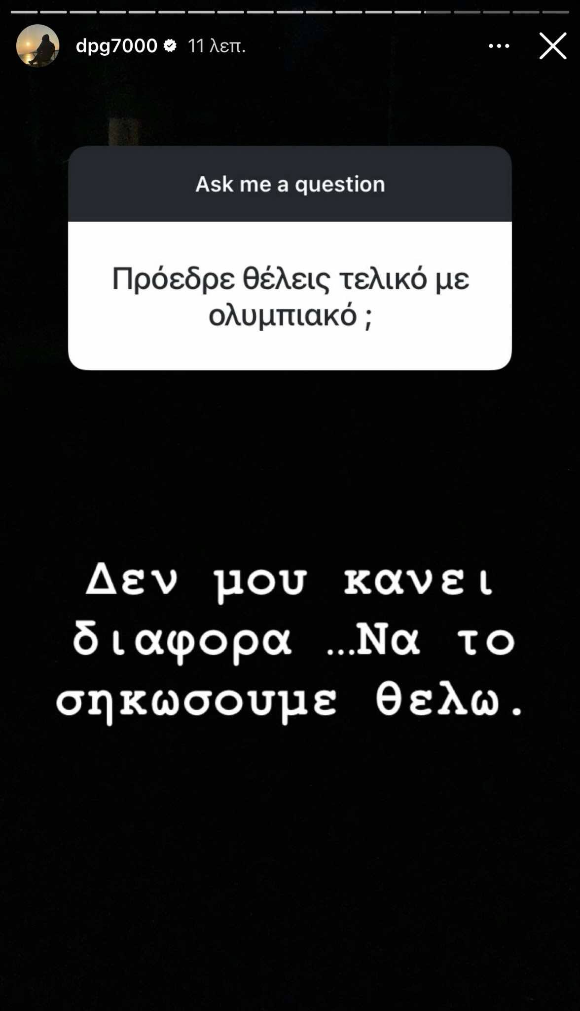 Ο Δημήτρης Γιαννακόπουλος απάντησε σε φίλο του Ολυμπιακού σε QnA στο Instagram. Τι είπε για το σενάριο ελληνικού τελικού στην Ευρωλίγκα.