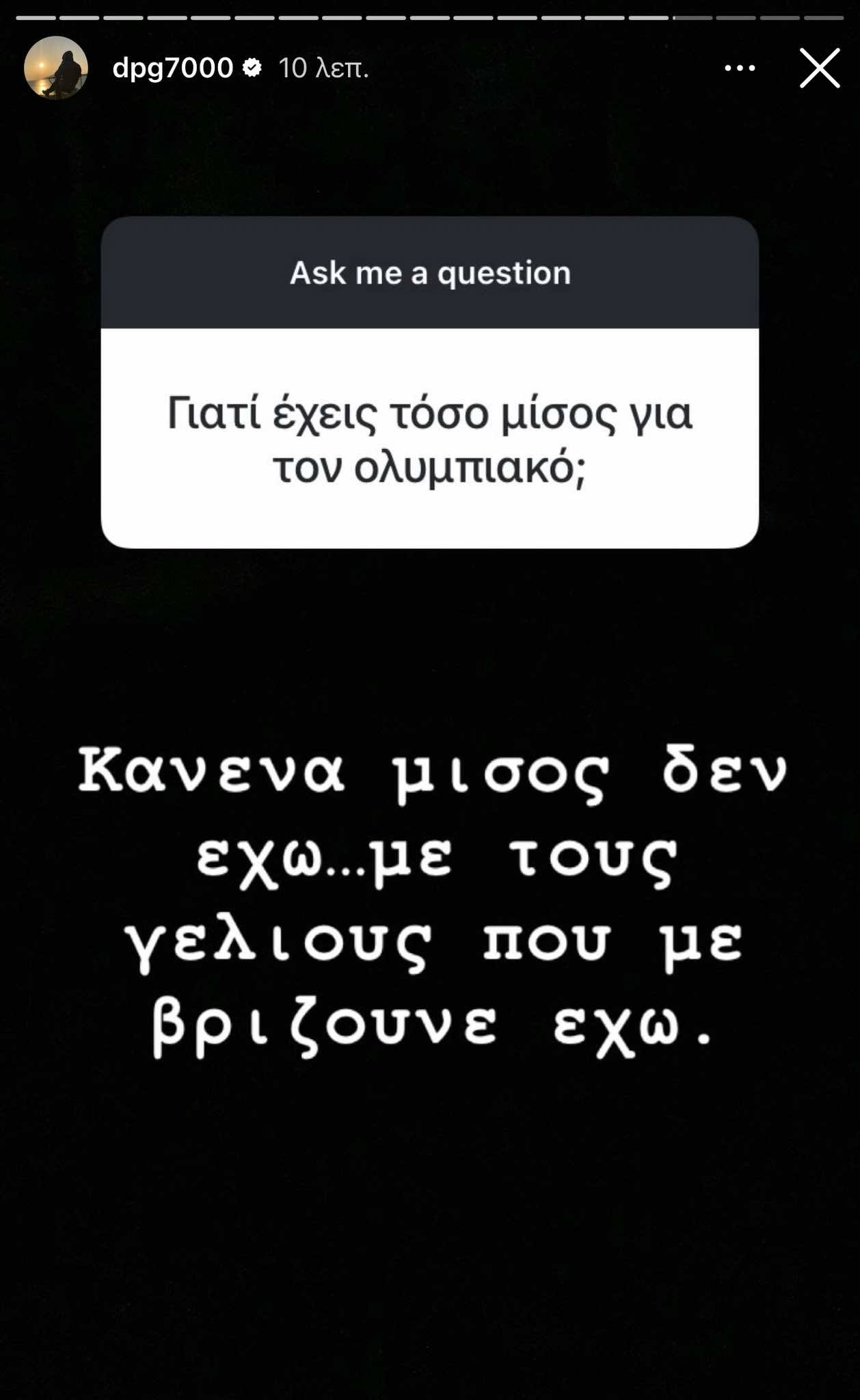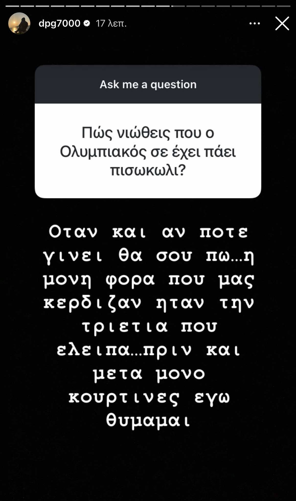 Όταν και αν ποτέ ο Ολυμπιακός με πάει π…λι, θα σου πω (σ.σ απάντησε σε φίλο των «ερυθρολεύκων).