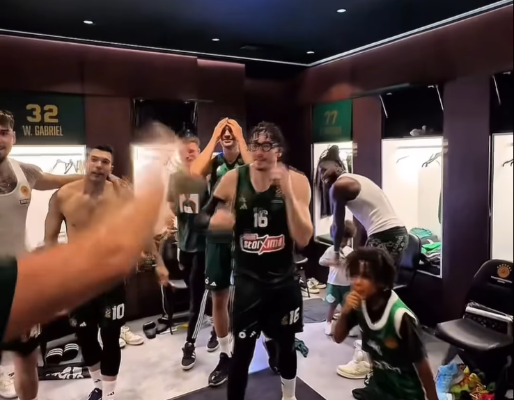 Ο άσος των “πρασίνων”, ο οποίος είχε κάνει εξαιρετική εμφάνιση σκοράροντας 28 πόντους, δέχθηκε μια καταιγίδα νερού από τους συμπαίκτες του ως ένδειξη επιβράβευσης – με μια μικρή παράπλευρη απώλεια: τα ειδικά γυαλιά με ενσωματωμένη κάμερα που του είχε δώσει η Euroleague για καταγραφή πλάνων.
