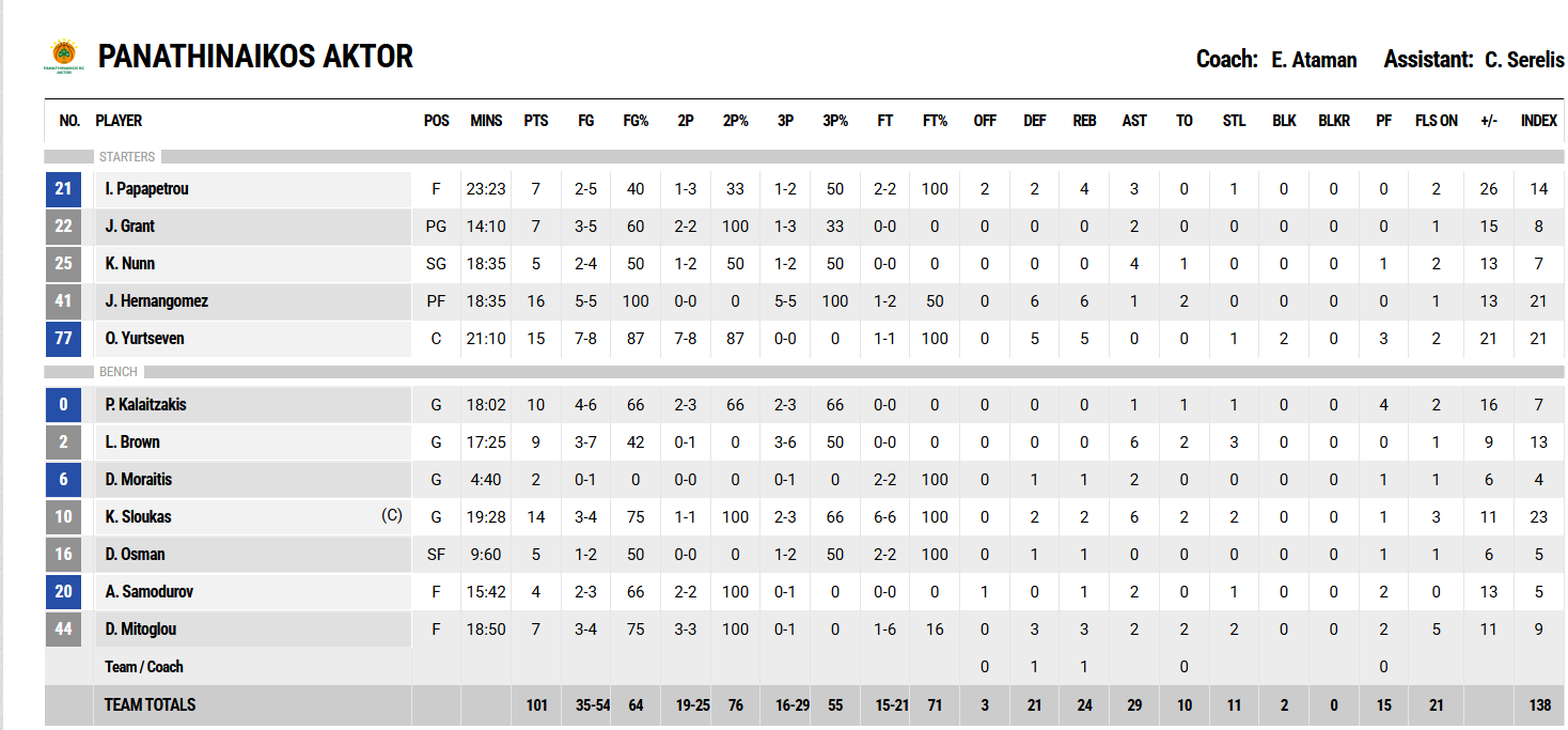 Δείτε τα στατιστικά των παικτών του Τριφυλλιού από το Παναθηναϊκός – Προμηθέας: