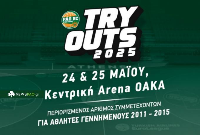H PAO BC Academy ανακοινώνει τη διεξαγωγή TRY OUTS στις 24 & 25 Μαΐου 2024 στο υπερσύγχρονο Glass Floor του Ο.Α.Κ.Α. για αθλητές ηλικίας 10-14 ετών (γεννημένοι από 2011 έως 2015), με σκοπό να συμπληρωθούν πιθανά κενά που θα προκύψουν στα τμήματα της νέας σεζόν (2025-26) ή σε τμήματα που πιθανόν δημιουργηθούν.