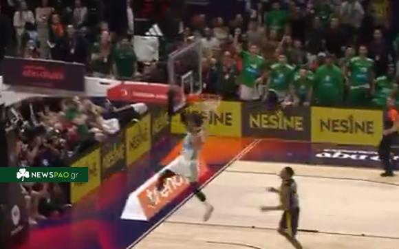 Ο Τούρκος καλαθοσφαιριστής έκλεψε τη μπάλα και κάρφωσε στο ανοιχτό γήπεδο για το 2-0 του Παναθηναϊκού.
