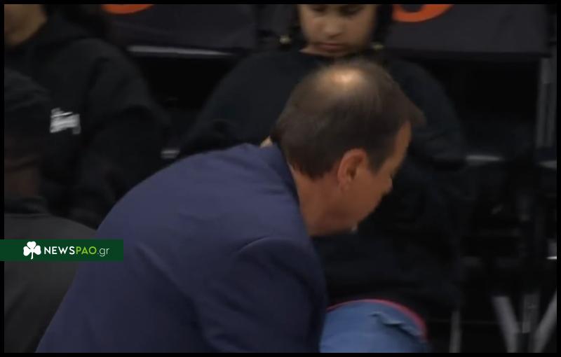 Οι «άρχοντες» της αναμέτρησης δεν καταλόγισαν φάουλ σε δεύτερη συνεχόμενη φάση πάνω στον Τζέριαν Γκραντ με αποτέλεσμα να αντιδράσει ο Τούρκος προπονητής από τον πάγκο και να τιμωρηθεί.