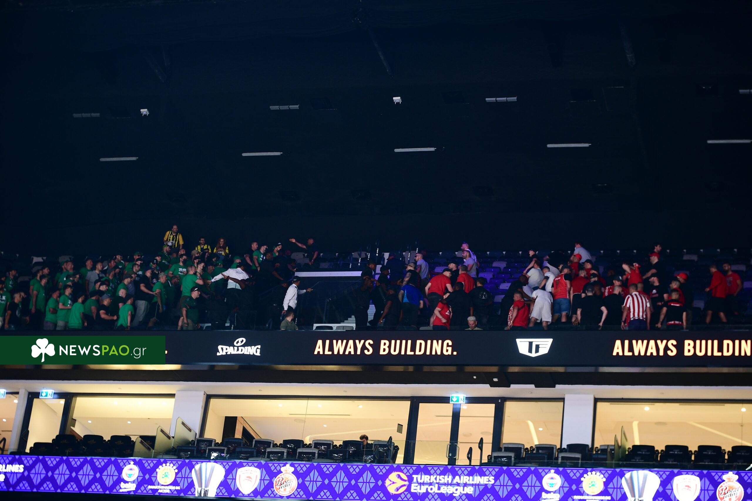 Στην «Etihad Arena» επικράτησε αναστάτωση, με τους φίλους του Παναθηναϊκού και του Ολυμπιακού να συγκρούονται μεταξύ τους.