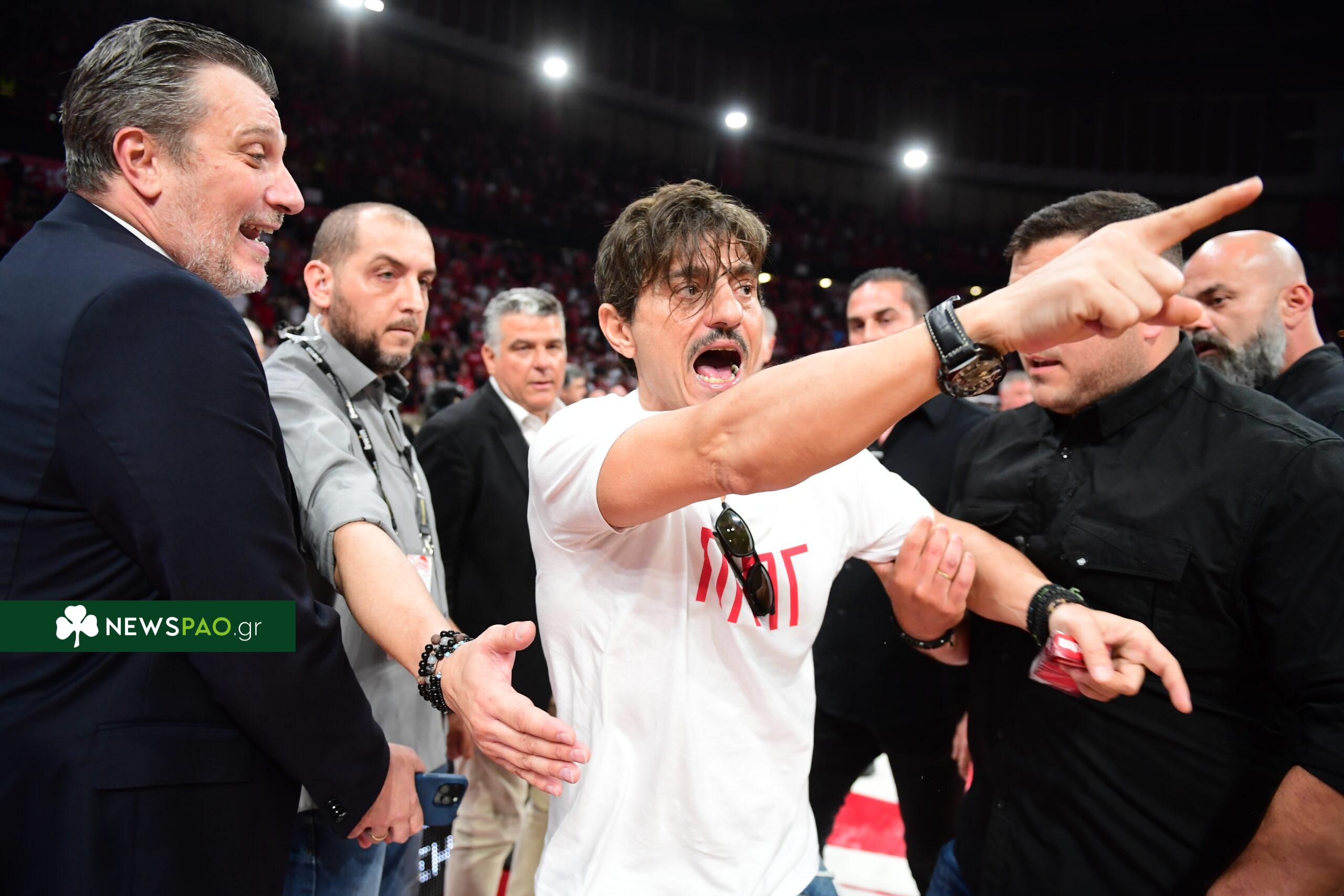Το δεύτερο παιχνίδι των τελικών ανάμεσα σε Ολυμπιακό και Παναθηναϊκό στο ΣΕΦ ξεκίνησε με επεισοδιακό τρόπο, καθώς η παρουσία του Δημήτρη Γιαννακόπουλου στο παρκέ προκάλεσε μεγάλη αναστάτωση.