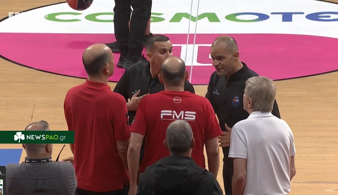Οι Παναγιώτης και Γιώργος Αγγελόπουλος έκαναν τις επισημάνσεις τους στους διαιτητές, ο διαιτητής Τσιμπούρης επέμεινε να αποχωρήσει από το γήπεδο ο Δημήτρης Γιαννακόπουλος.