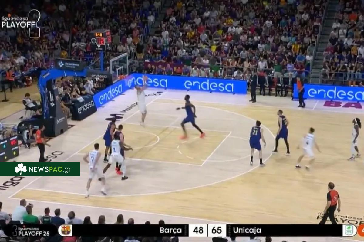 Συγκεκριμένα ο πρώην σέντερ του Παναθηναϊκού «βυθίστηκε» στη ρακέτα των Καταλανών, παρέλαβε την μπάλα από τον Κέντρικ Πέρι και έχοντας πλήρη επίγνωση της… τοποθεσίας, κάρφωσε ανάποδα στο καλάθι της Μπαρτσελόνα.
