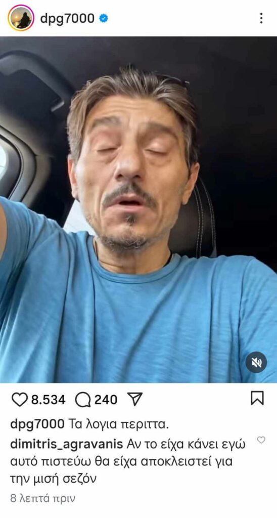 Ο Δημήτρης Αγραβάνης σχολίασε την ανάρτηση του Δημήτρη Γιαννακόπουλου, στο Instagram, αναφορικά με την τιμωρία του Εβάν Φουρνιέ.