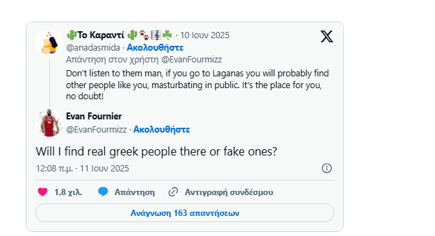 Μπηχτή του Φουρνιέ για Αταμάν μετά από σχόλιο «θα βρεις άλλους σαν εσένα, να @υνανίζονται δημόσια»