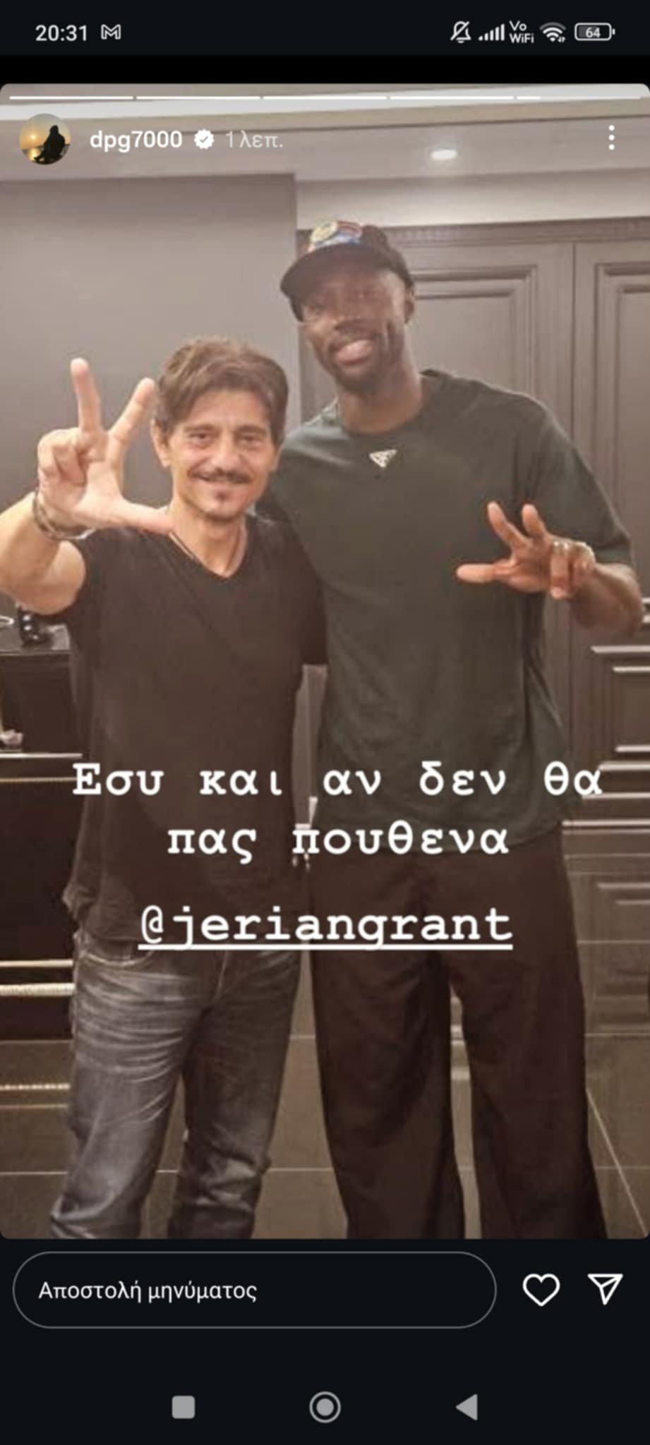 Ο Δημήτρης Γιαννακόπουλος «φωτογράφισε» την παραμονή του Τζέριαν Γκραντ στον Παναθηναϊκό μέσα από μια ανάρτηση στο Instagram. Μέσα από μια εικόνα που δημοσίευσε στον προσωπικό του λογαριασμό, άφησε ξεκάθαρα να εννοηθεί πως ο Αμερικανός γκαρντ θα συνεχίσει να φορά τα πράσινα και τη νέα σεζόν.