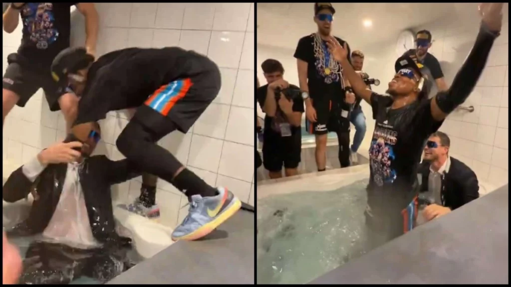 Η στιγμή της πτώσης του Σορτς στην πισίνα συνοδεύτηκε από το σύνθημα «MVP», με τον ίδιο να χαμογελά και να απολαμβάνει την αναγνώριση μετά από μια εξαιρετική χρονιά. Το σχετικό βίντεο καταγράφει όλη την ένταση και τον ενθουσιασμό των στιγμών αυτών, και αποτυπώνει το δέσιμο του παίκτη με την ομάδα, λίγο πριν ανοίξει ένα νέο κεφάλαιο στην καριέρα του, αυτή τη φορά στην Ελλάδα.