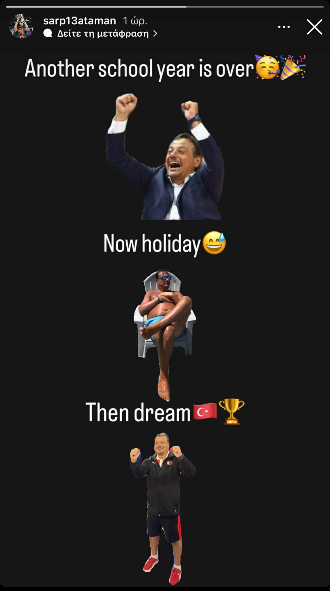 Ο γιος του Εργκίν Αταμάν έδωσε το σύνθημα για τις καλοκαιρινές διακοπές περιμένοντας το Eurobasket 2025.