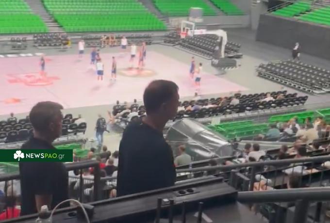 Η παρουσία του συνοδεύεται και από μέλη του τεχνικού του τιμ, επιβεβαιώνοντας τη σημασία που δίνει στη διαρκή επιμόρφωση και στις εξελίξεις του ευρωπαϊκού μπάσκετ.