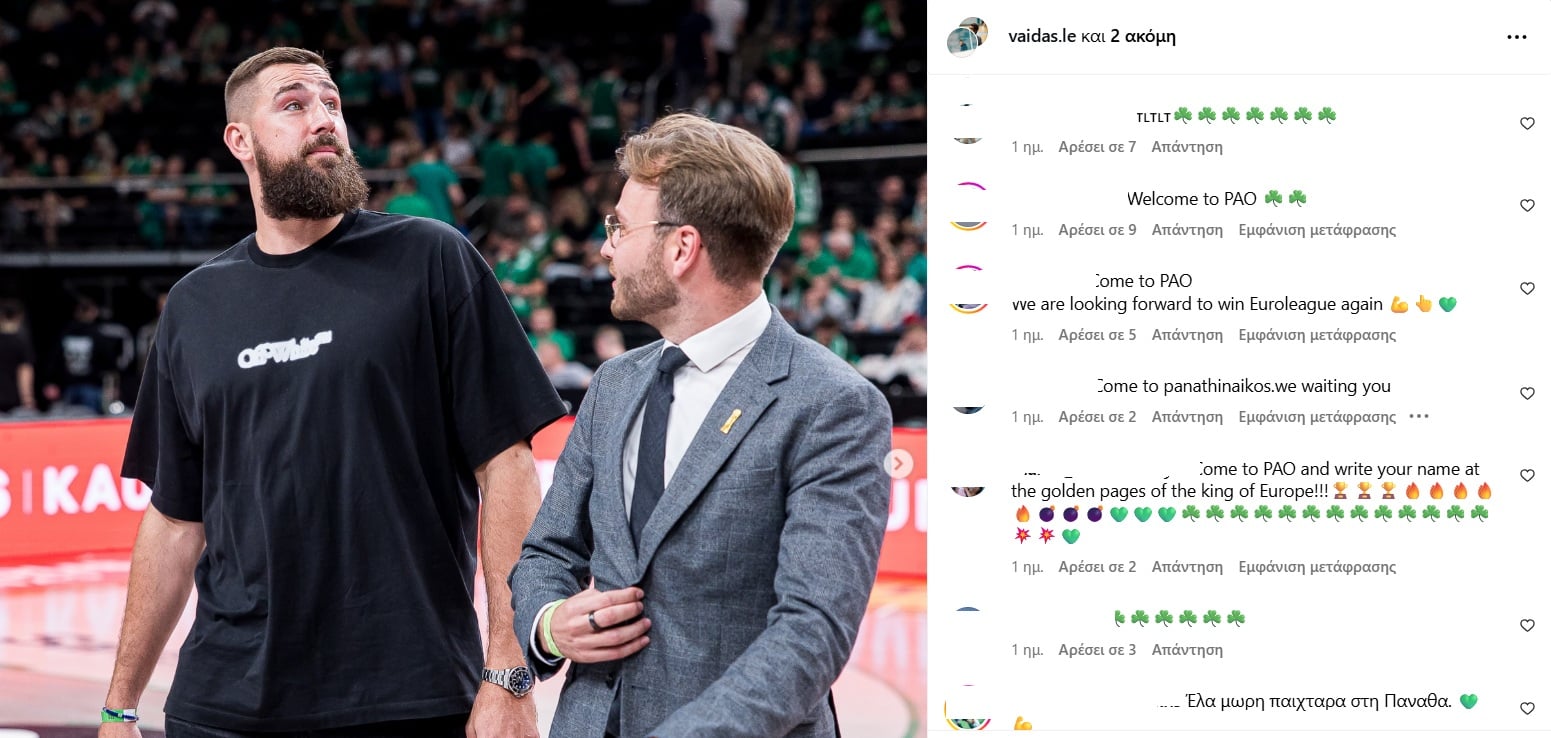Το προφίλ του Λιθουανού σέντερ έχει μετατραπεί σε ψηφιακή εξέδρα υποδοχής, με τους φίλους της ομάδας να του δείχνουν την αφοσίωσή τους και να εκφράζουν την επιθυμία τους να τον δουν να ενισχύει την ομάδα στη φετινή προσπάθεια για ευρωπαϊκή καταξίωση.
