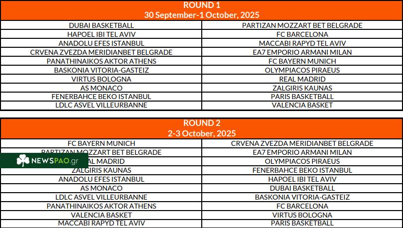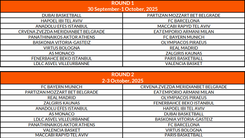 Η EuroLeague έδωσε στη δημοσιότητα το αναλυτικό καλεντάρι για τη σεζόν 2025-26 το πρωί της Πέμπτης, φέρνοντας στο φως τις ημερομηνίες και τις πρώτες «μάχες» της νέας χρονιάς.