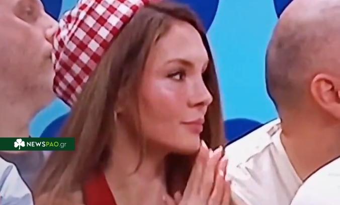 Η Τουρκάλα ηθοποιός έκλεψε την παράσταση, όταν την «έπιασε» ο τηλεοπτικός φακός κατά τη διάρκεια της πρώτης περιόδου.
