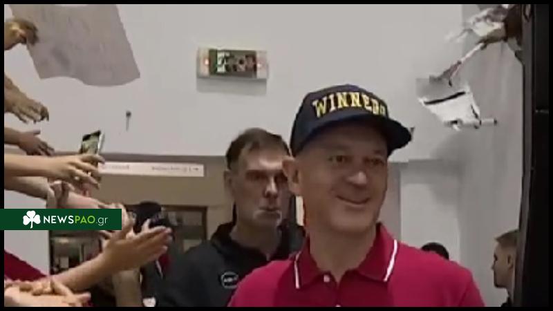Μετά τη νίκη του Ολυμπιακού επί του Προμηθέα Πατρών στον τελικό του Σούπερ Καπ ο Γιώργος Αγγελόπουλος φόρεσε το παραδοσιακό καπελάκι «Winners».