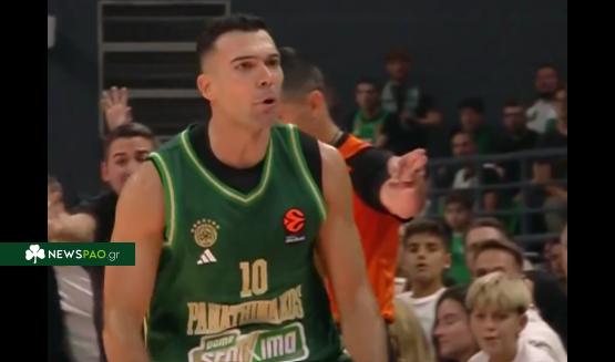 Με το σκορ υπέρ της Μπαρτσελόνα ο «αρχηγός» του Παναθηναϊκού Aktor προσπάθησε να ξεσηκώσει τον κόσμο του «Τριφυλλιού» έπειτα από κλέψιμο και κερδισμένο φάουλ.
