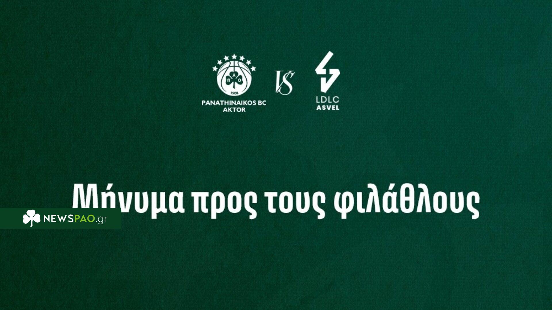 Η ΚΑΕ Παναθηναϊκός AKTOR ενημερώνει το φίλαθλο κοινό εν όψει της αποψινής sold-out αναμέτρησης (15/10, 21:15) με την LDLC ASVEL Villeurbanne για τη 4η αγωνιστική της κανονικής περιόδου της EuroLeague.