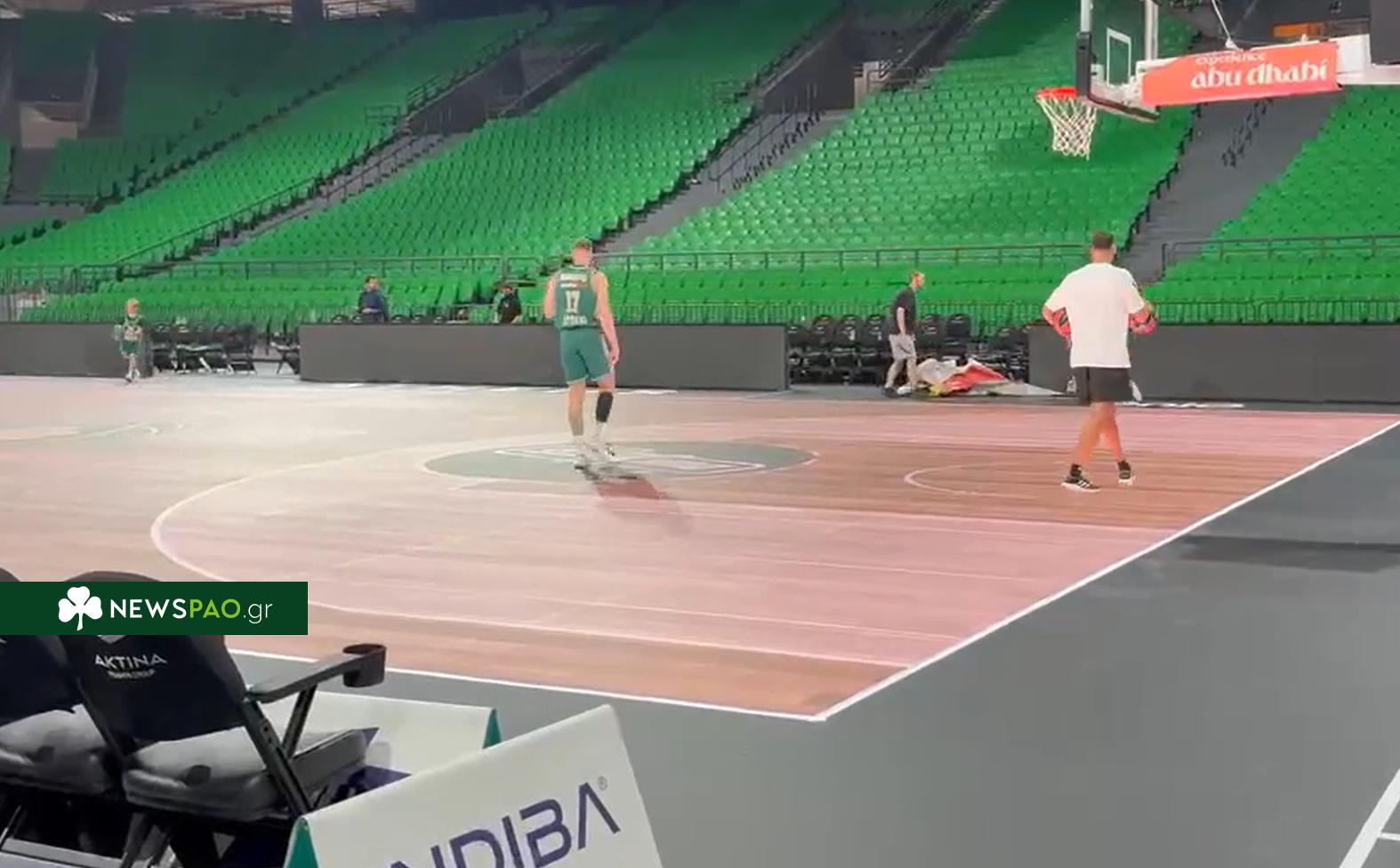 Ο Νίκος Ρογκαβόπουλος δεν πήρε χρόνο συμμετοχής, αλλά παρέμεινε στο παρκέ για ατομική προπόνηση ενόψει Εφές.