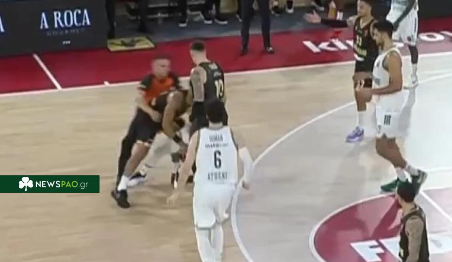 Συγκεκριμένα, ο διαιτητής έπιασε με λαβή από πίσω τον Οκόμπο και τον έριξε στο παρκέ (σ.σ έπεσε και εκείνος μαζί) με τις εικόνες να «μιλούν» από μόνες τους.
