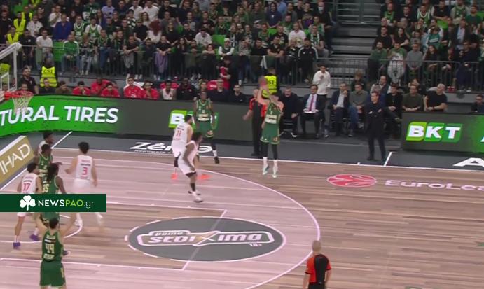 Ο Πάνος Καλαϊτζάκης έδωσε ώθηση στον Παναθηναϊκό με τρίποντο στο ξεκίνημα του β ημιχρόνου.