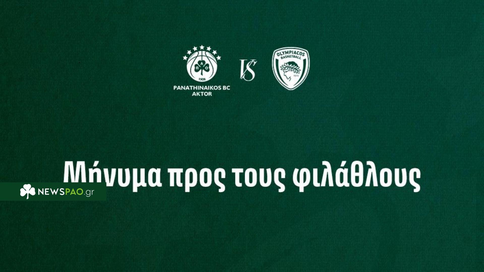 Η ΚΑΕ Παναθηναϊκός AKTOR απηύθυνε μήνυμα προς το φίλαθλο κοινό ενόψει της αποψινής sold out αναμέτρησης (02/01, 21:15) με τον Ολυμπιακό, για τη 19η αγωνιστική της κανονικής περιόδου της EuroLeague.