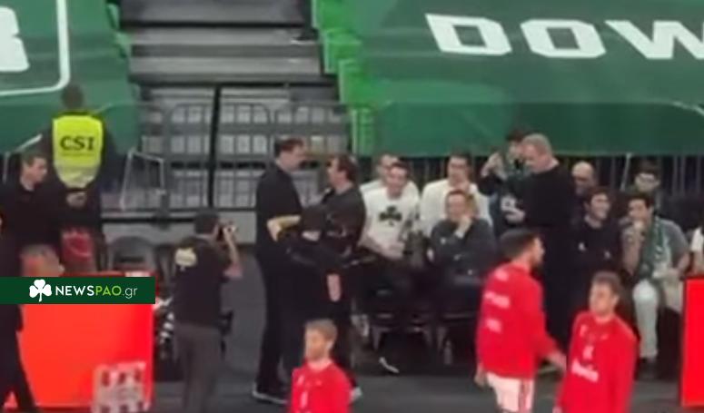 Εκείνος πήγε κατευθείαν στον πάγκο των Πειραιωτών για να χαιρετήσει τον Γιώργο Μπαρτζώκα.