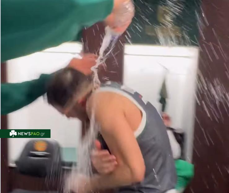 Μετά το τέλος του ματς, το κλίμα στα αποδυτήρια ήταν πανηγυρικό. Οι συμπαίκτες του υποδέχτηκαν τον Τολιόπουλο με χειροκροτήματα και… μπουγέλο, σε μια σκηνή που έδειξε πόσο ξεχωριστή ήταν η βραδιά.
