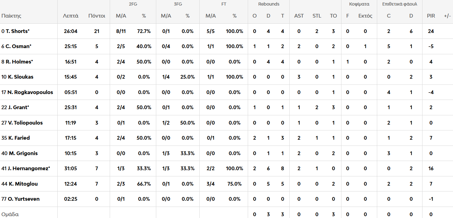 Τζέριαν Γκραντ (4/10): Φυσιολογικά και ο Γκραντ δεν μπορούσε να πιάσει την απόδοση της Τρίτης, όπως και ο Σλούκας. Αντιμετώπισε ενοχλήσεις και έμεινε προληπτικά εκτός.