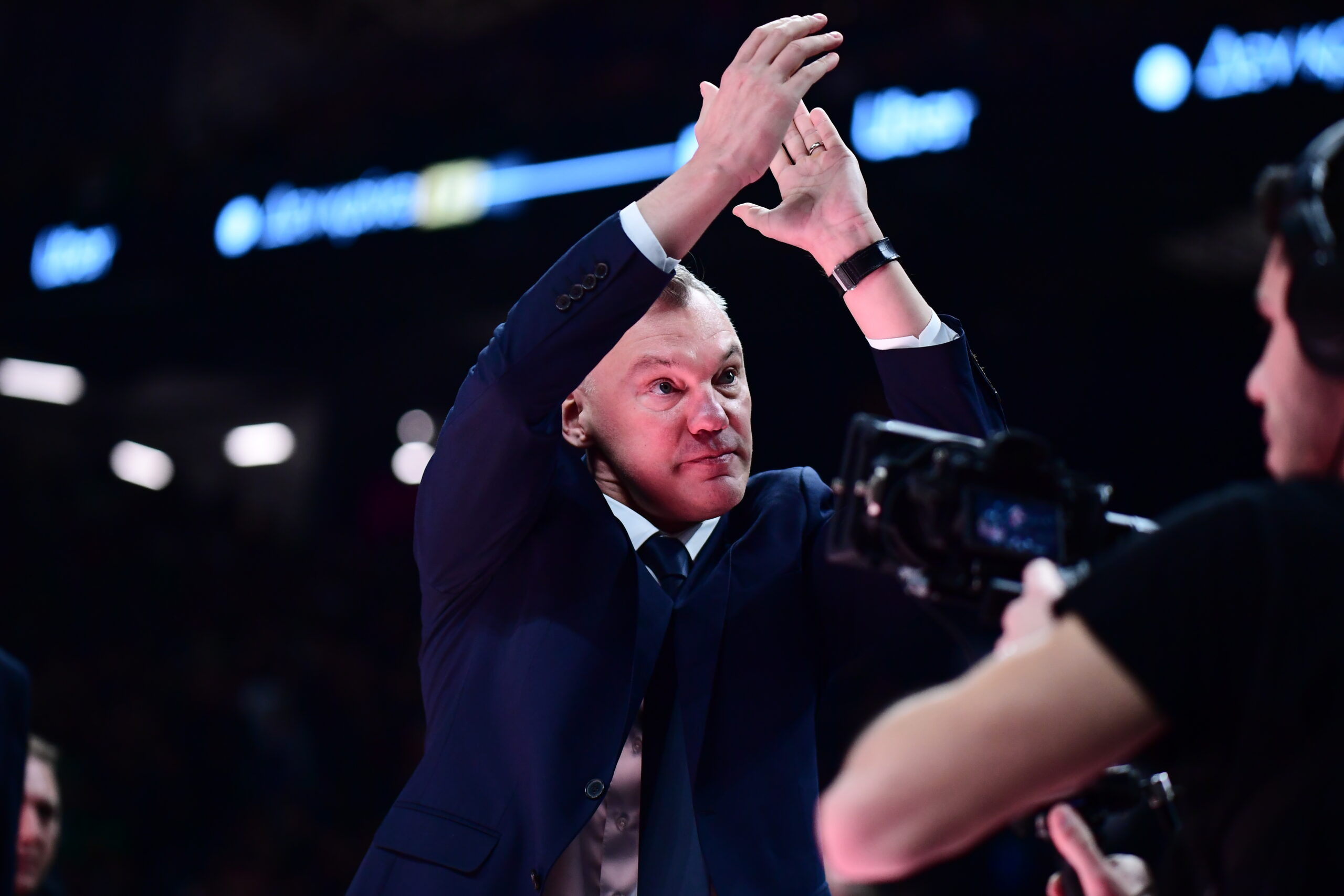 Ο Σαρούνας Γιασισκεβίτσιους καταχειροκροτήθηκε από τους οπαδούς του Παναθηναϊκού Aktor κατά την είσοδό του στο glass floor του «Telekom Center Athens».