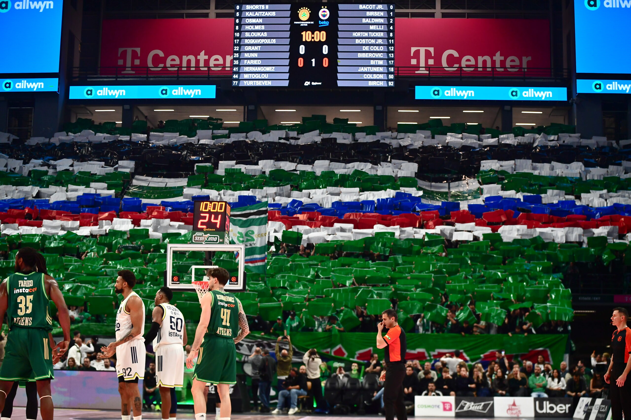 Εντυπωσιακή είναι η ατμόσφαιρα στο «Telekom Center» για την αναμέτρηση του Παναθηναϊκού Aktor με τη Φενερμπαχτσέ.
