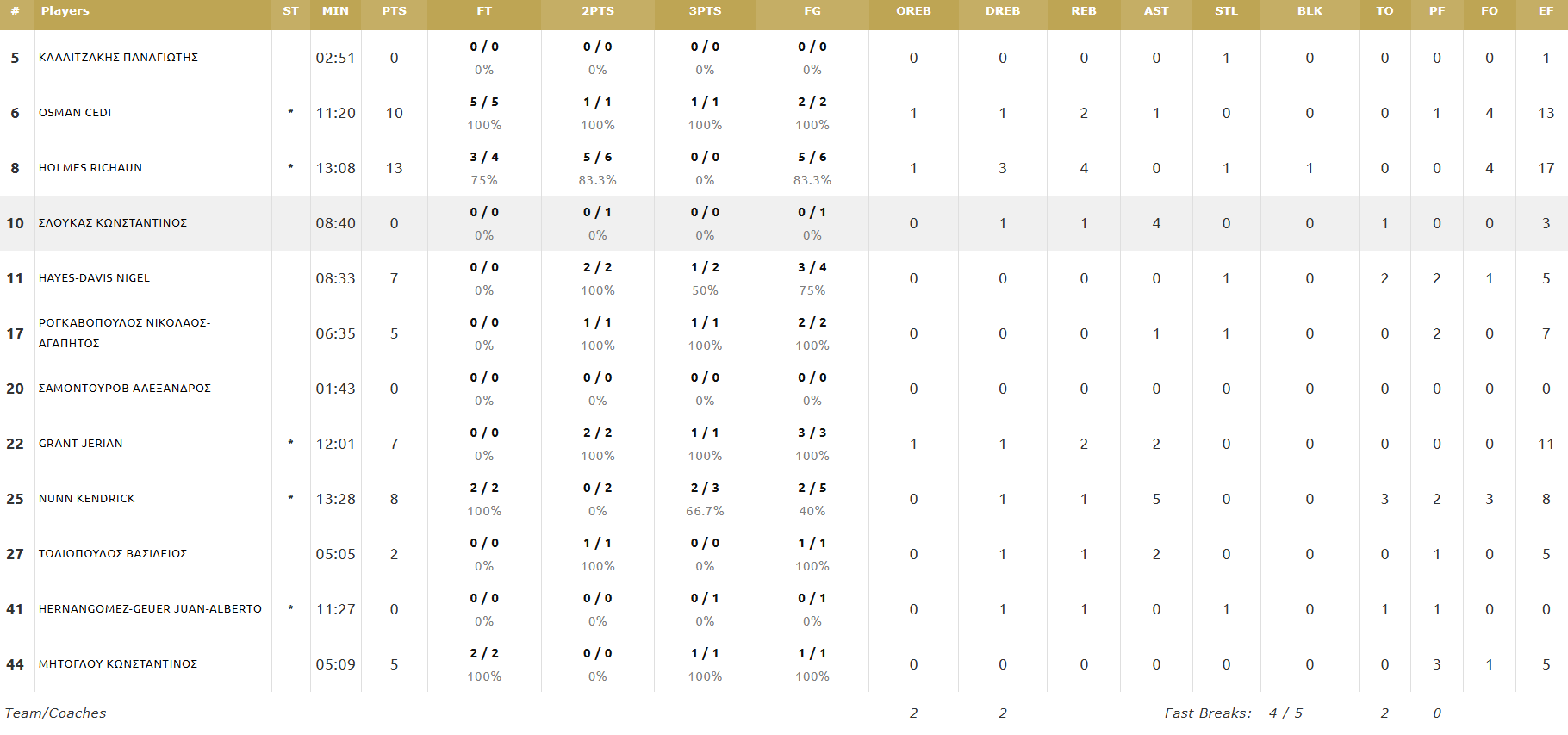 Παναθηναϊκός - ΠΑΟΚ: Οι πόντοι των παικτών στο ημίχρονο (pic)